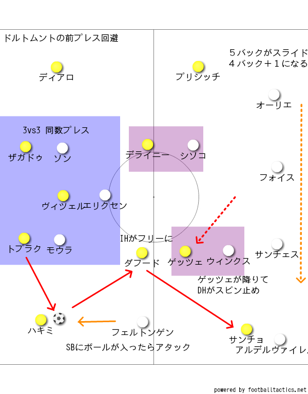 こうして、ドルトムントは前プレスを回避し攻撃に転じることが出来た。