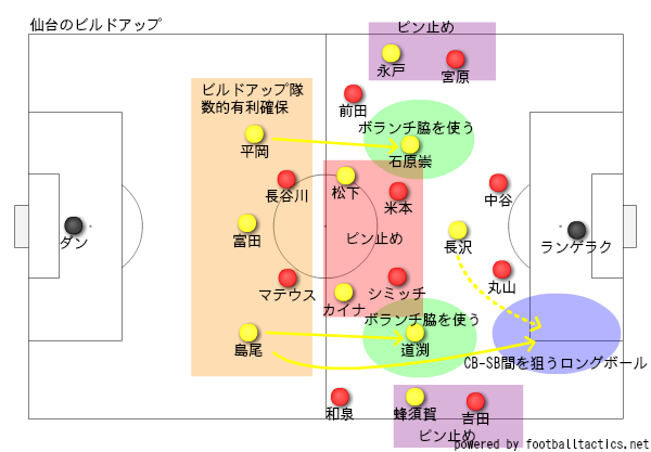 仙台は形を4-3-3に変更しボールを運ばせないようにする