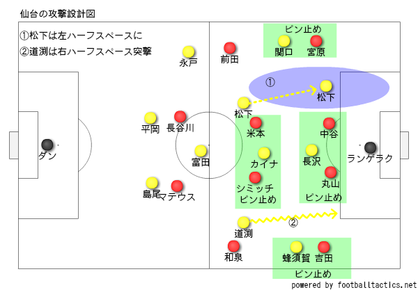 また、4-3-1-2にしてから仙台が何度も決定機を作る事が出来た。