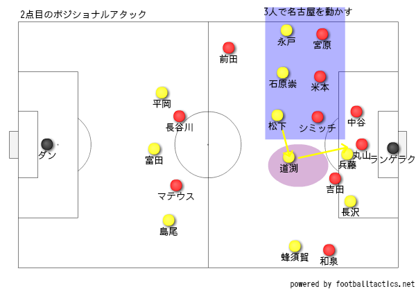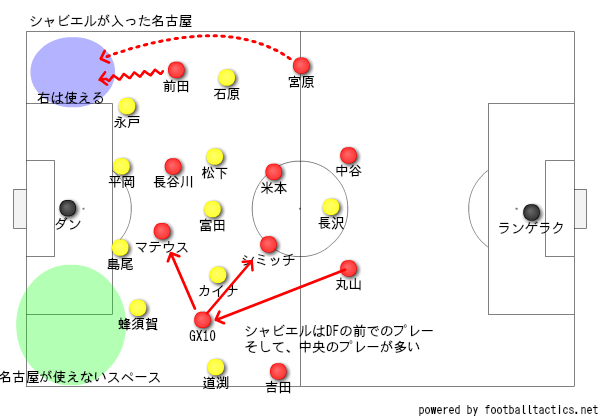 今まで全くなかった形だった。33分長沢のシュート場面は象徴する形だった。