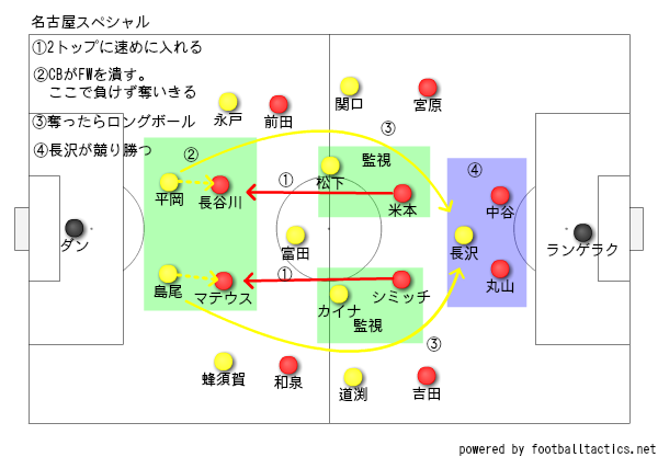 立ち上がりにFC東京のゴールキックのセカンドボールを拾って一発の縦パスで長沢にあて