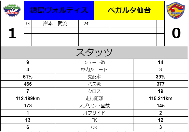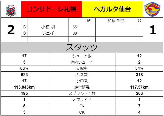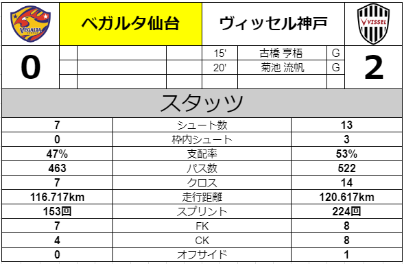 その後仙台に攻撃する力は無く1-2で逆転負けとなった。