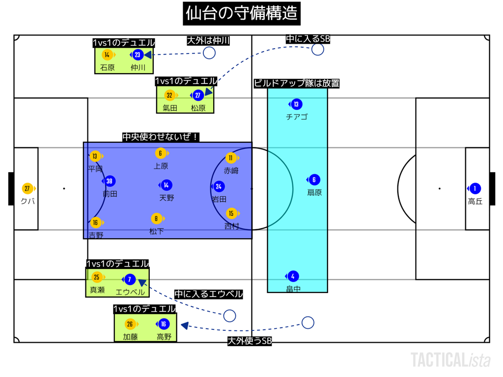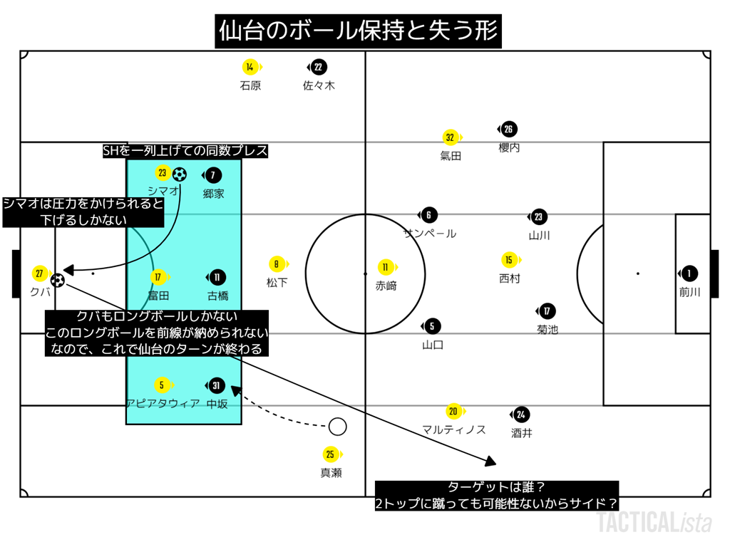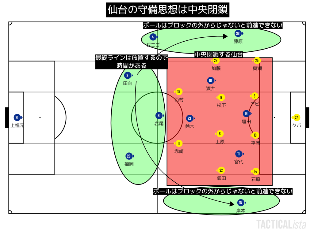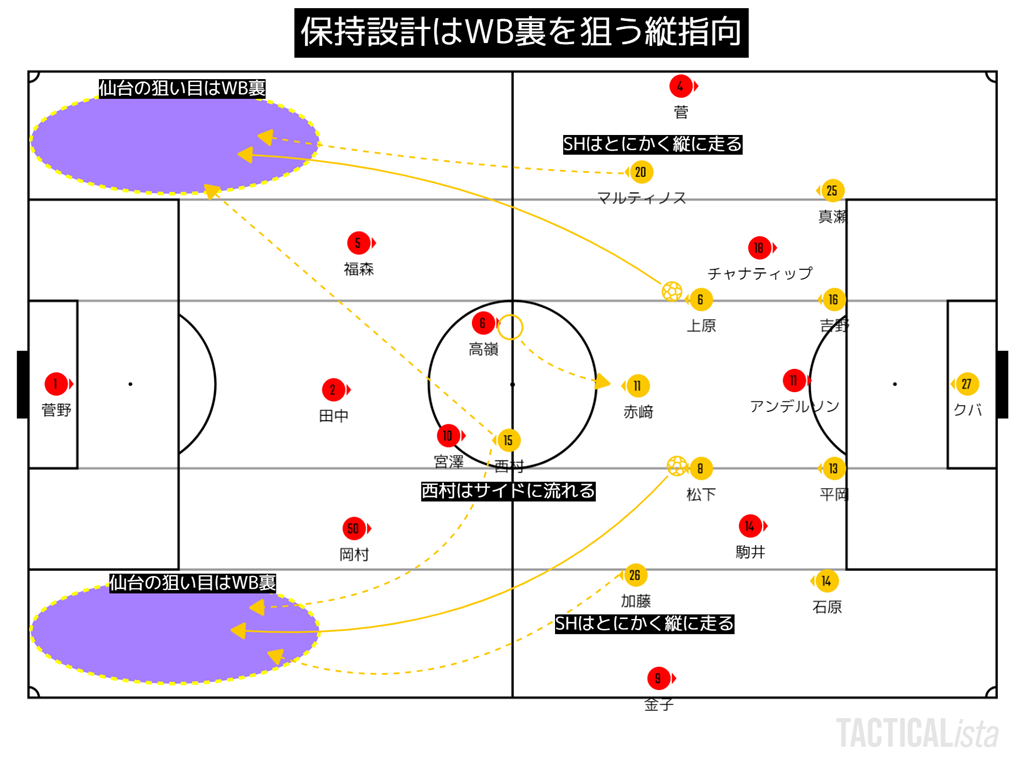 この日仙台の戦略は非常にわかりやすいものであった。