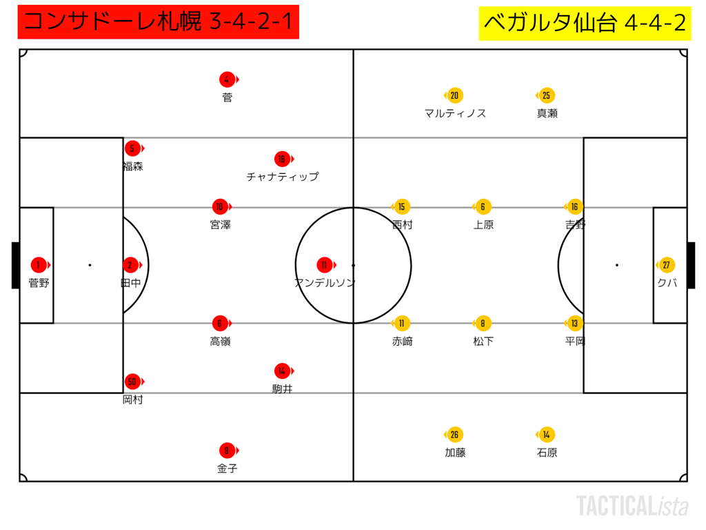 先制され、仙台の4-4をなかなか攻略出来ない札幌は少しやり方を変える。
