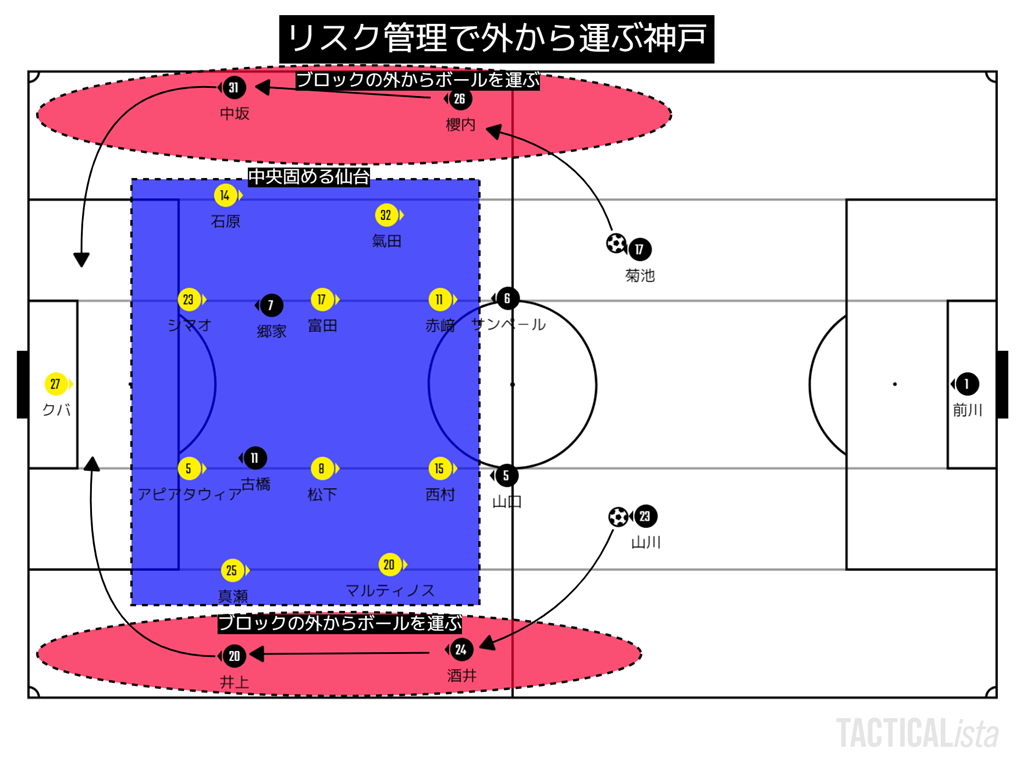 そして、仙台の攻撃もこの4-4を作れるように、