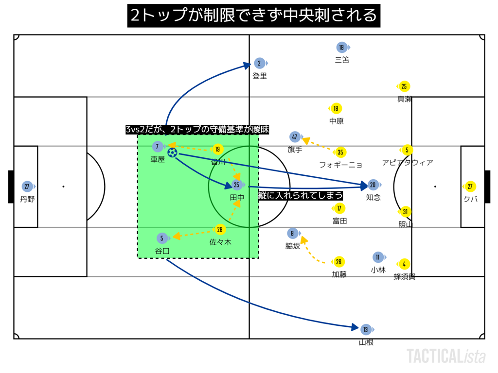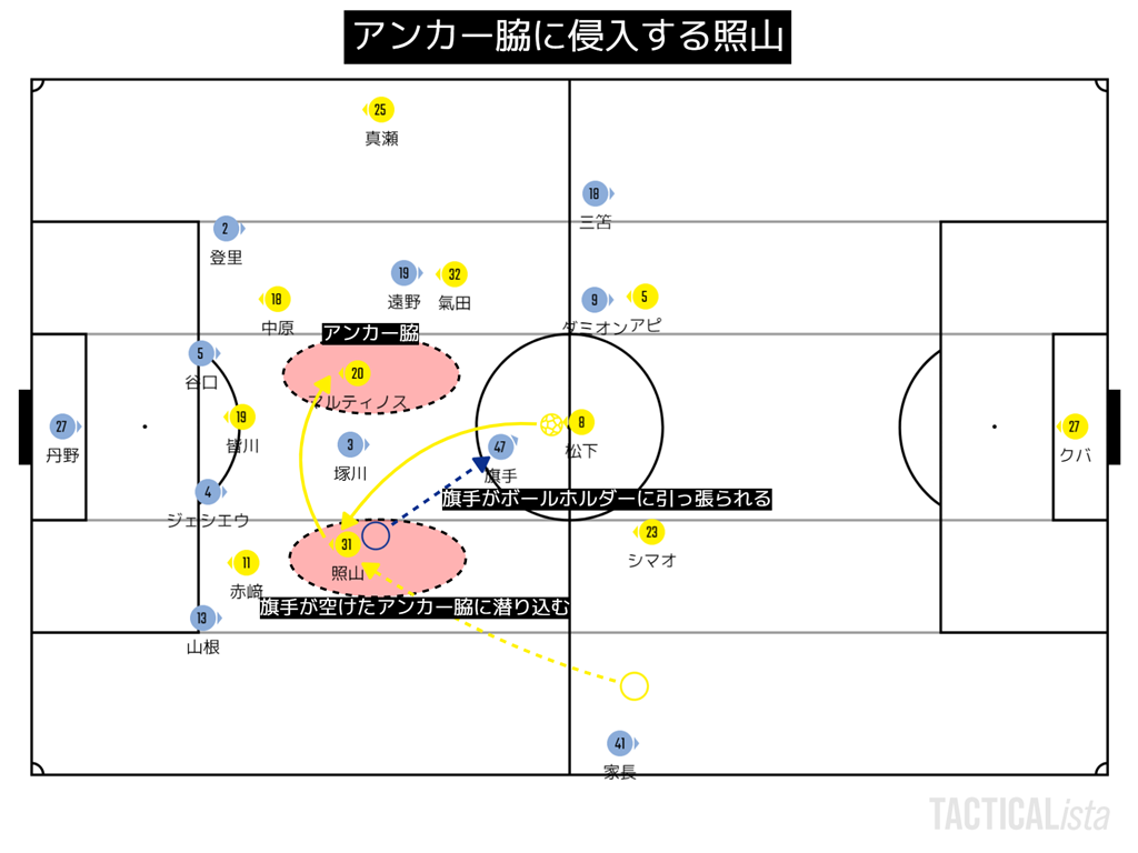 ま、もちろんマルティノスのタスクとしてIHの長澤を見るというタスクはあって、それはチームの狙いでもあるんだけれども、あそこの中央までついていくか。