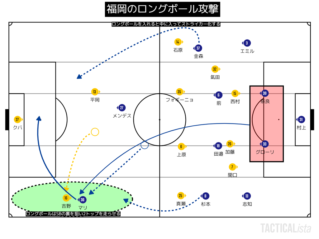 これで押し込んだためにクロスのターゲットとして山崎を投入し決めにかかる。
