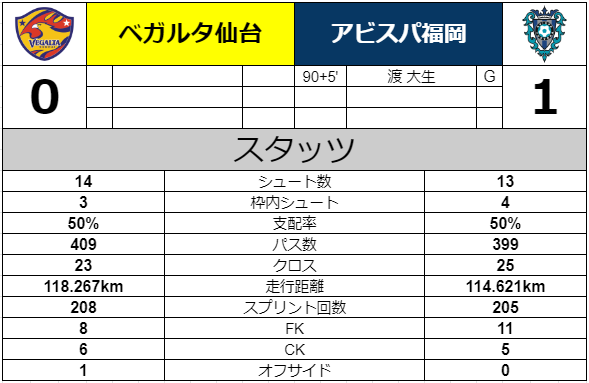 ということで、仙台としては外からのクロスを跳ね返せばいい。ということでそれを淡々とこなしていくことで「守れている」前半だった