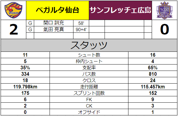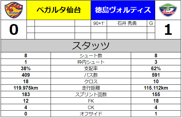 これで仙台は前半1点リードで折り返す。