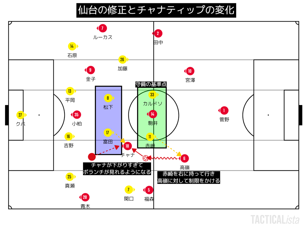 この現象とはまた別にチャナティップのポジションが変化していってそれも仙台が守れるひとつの要因にだった。