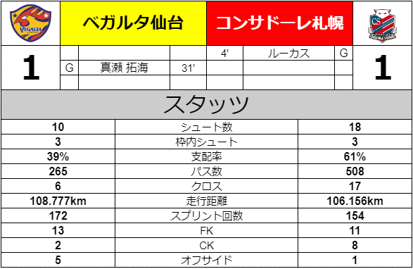 というのは仙台とって悪くない状態で折り返す事に成功。