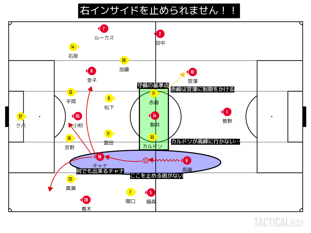 カルドソが左に行った事で左から同じ事をやられる可能性があったけども、そのケースは1回のみ。