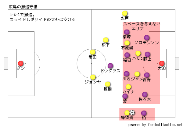 広島は基本5-4-1で撤退。