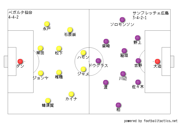 ソロモンソンが2,3度CB-SB間を突いてチャンスを作るのみでチームとしての狙いは無い様にも思えた。それが仙台としては助かった点だと思う。
