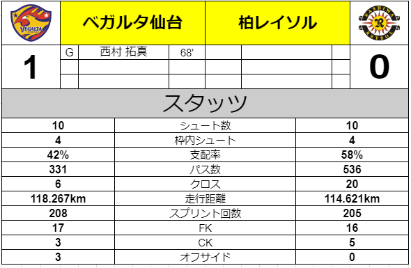これが左右から柏の最終ラインを揺さぶる形になり西村がフリーで押し込み