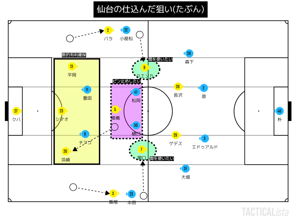 これは依然として負け筋としては残っていかが最終ラインとクバが適切に対応し堪える仙台。