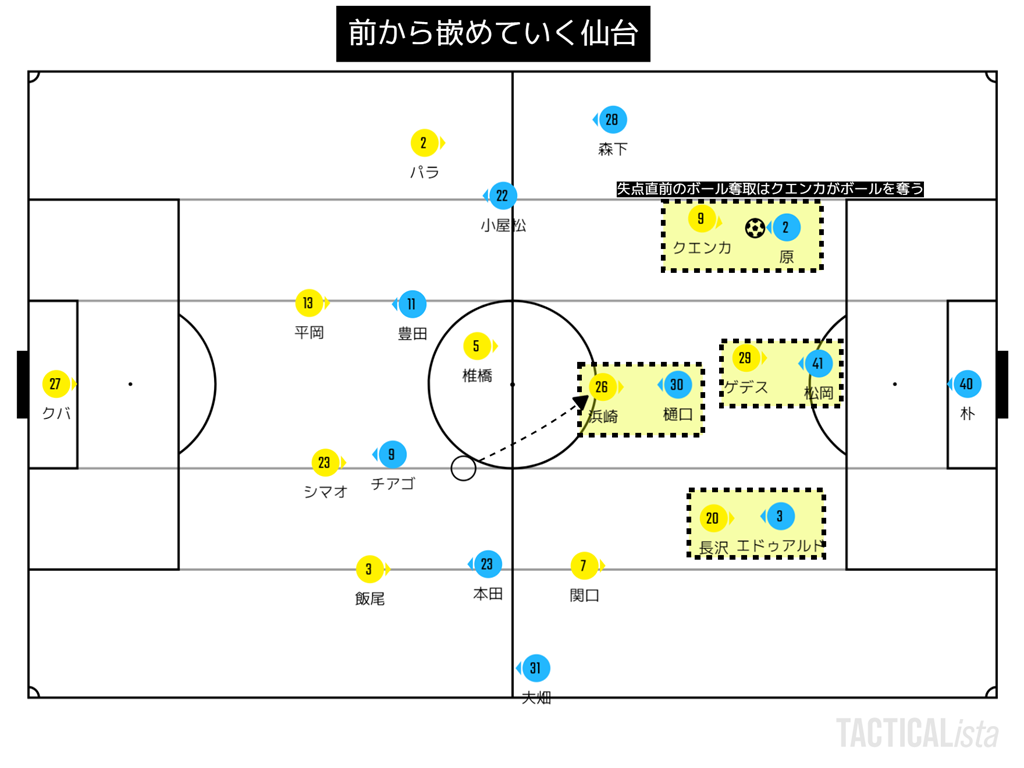 この時の原川が仙台は捕まえらずそこからひたすらに前進され決定機を作られた仙台。