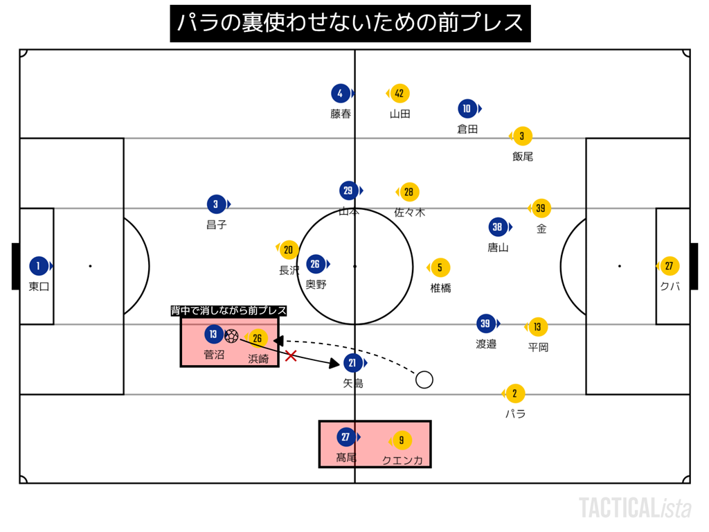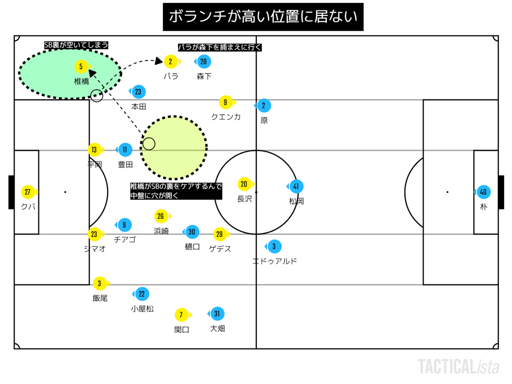 ただ、佐々木や椎橋が原川に圧力かけに行けず、結局フリーで展開されてしまう。
