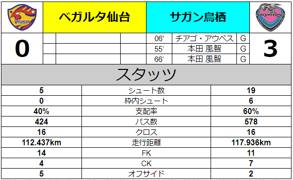 さて、今月2回目の鳥栖戦。仙台としては、前回ホームで酷いゲームをしたのでアウェイとはいえリベンジしたい。