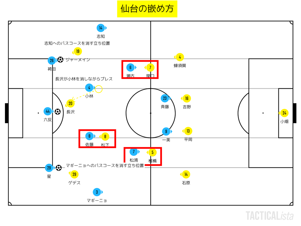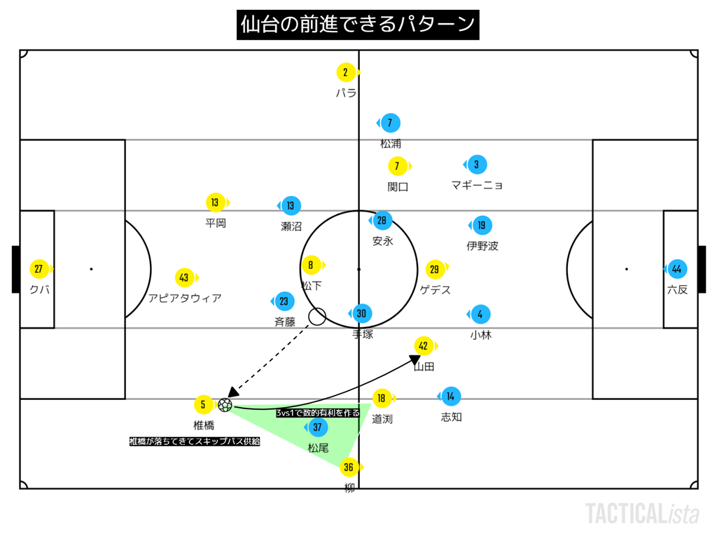 そこから雪崩式にマークがズレていき仙台がチャンスを作った。