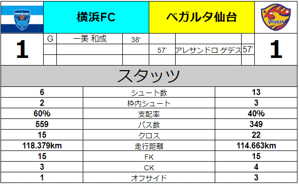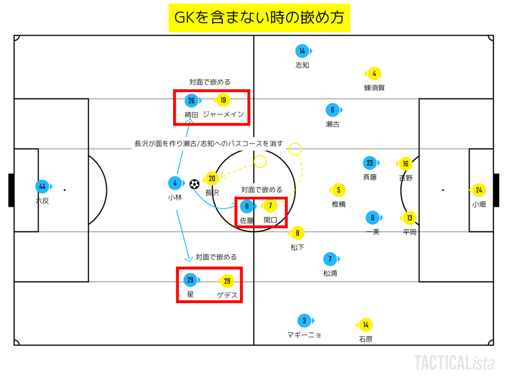 最終ラインの数的有利を上手く消し横浜FCの攻め手を消すことに成功した。
